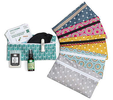 Abwehrstark durch die aktuelle Zeit. Maskengarage aus dünnem Wachsstoff, eine Stoffmaske, ein Maskenspray Abwehrstark 30ml, ein Handsanitizer 18ml, ein Nasenstift AbwehrStark, Abwehrstarke Rezpt-Karten. Die Farbe und das Muster der Maskengarag ist nicht wählbar